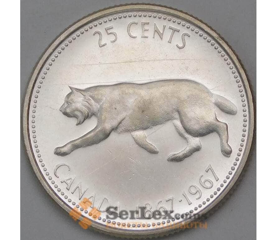 Монета Канада 25 центов 1967 КМ68 XF- 100 лет Конфедерации арт. 30681
