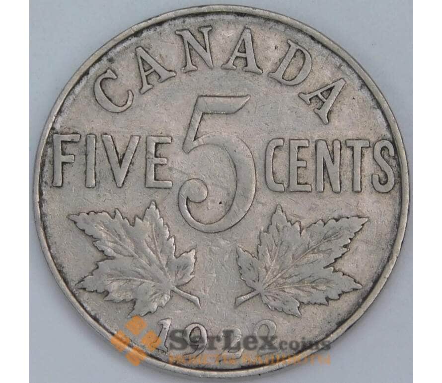 Канада 5 центов 1922 КМ29 F+ арт. 57255