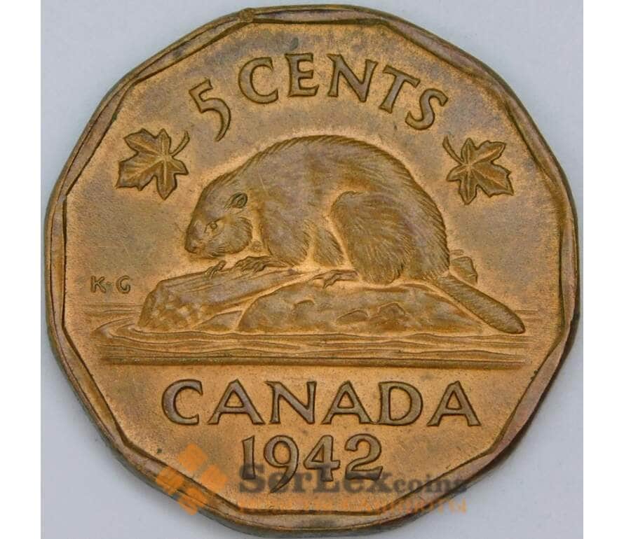 Канада 5 центов 1942 КМ39 aUNC
