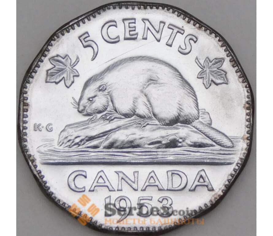 Монета Канада 5 центов 1953 КМ50 UNC арт. 22026