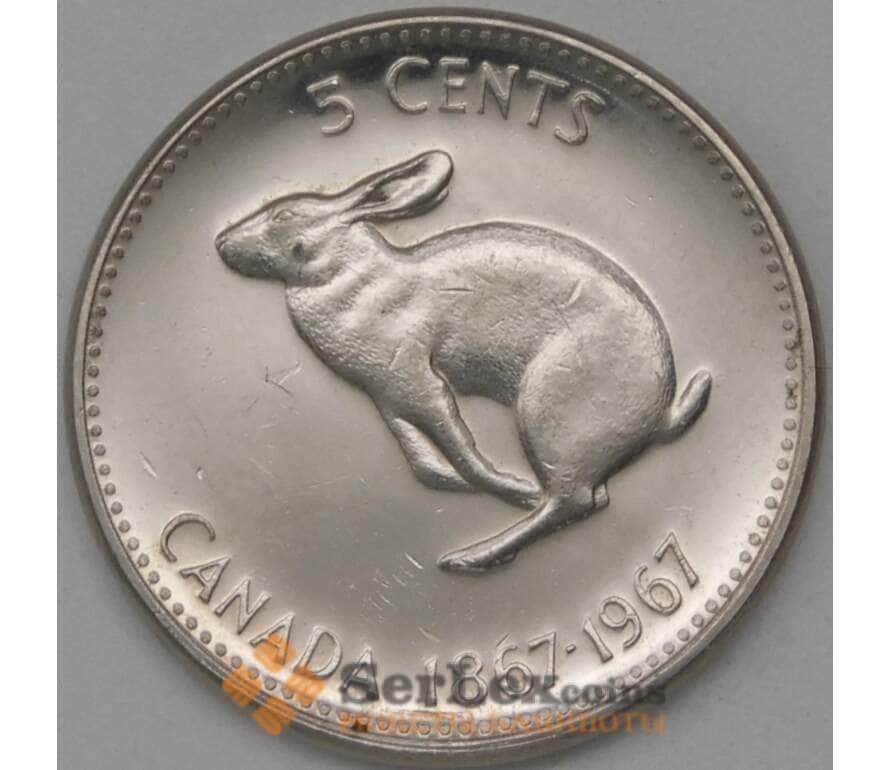 Монета Канада 5 центов 1967 КМ66 AU-aUNC 100 лет Конфедерации арт. 22874