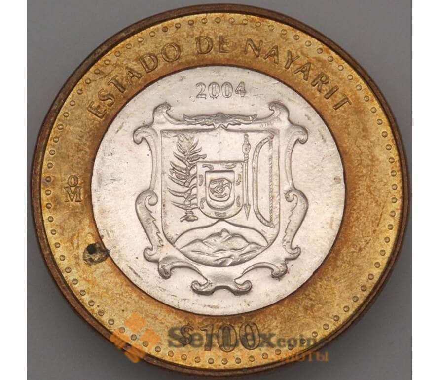 Монета Мексика 100 песо 2004 КМ744 aUNC Серебро Наярит (n17.19) арт. 19045