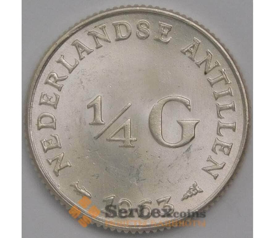 Монета Нидерландские Антиллы 1/4 гульдена 1963 КМ4 UNC арт. 39821