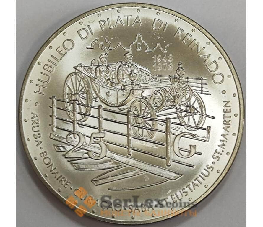 Монета Нидерландские Антиллы 25 гульденов 1973 КМ14 UNC 25 лет правлению Юлианы арт. 39843, большой ассортимент, привлекательные цены.