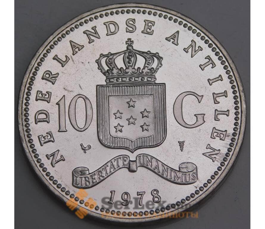Нидерландские Антиллы монета 10 гульденов 1978 КМ20 BU царапины арт. 46221