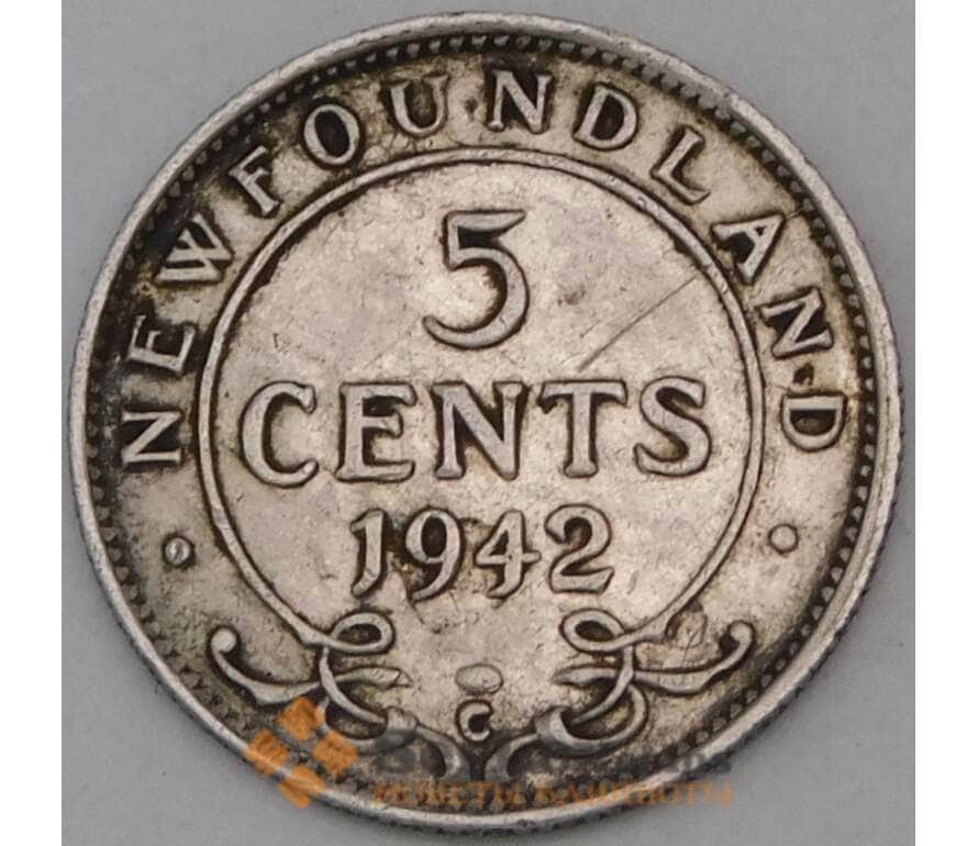 Ньюфаундленд 5 центов 1942 КМ19 Серебро