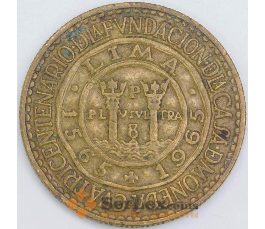 Перу 1 соль 1965 КМ240 VF 400 лет Монетный двор Лимы арт. 57594