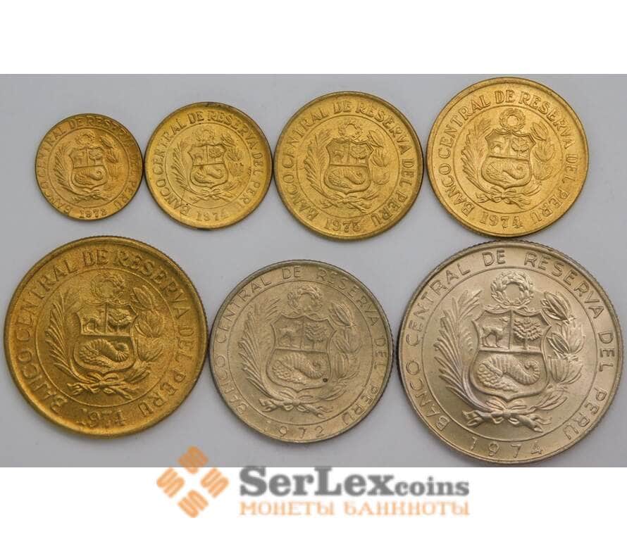 Перу набор монет 5, 10, 25 сентаво, 1/2, 1, 5, 10 соль (7 шт.) 1972-1975 aUNC арт. 43702
