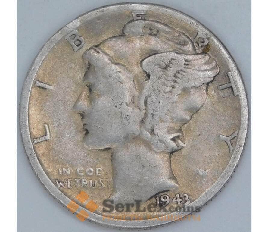 США дайм 10 центов 1943 КМ140 F арт. 56849