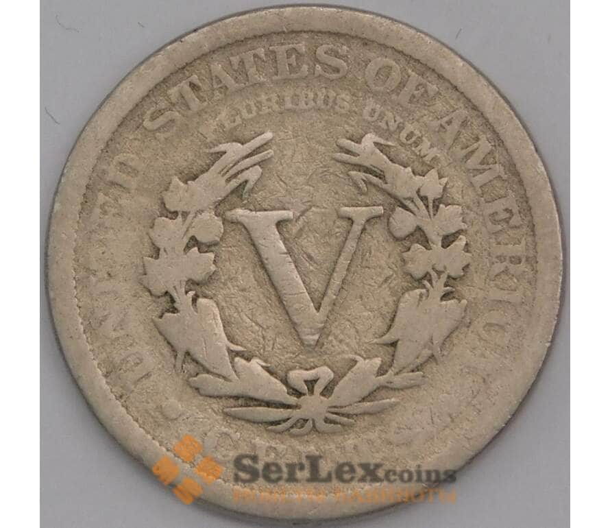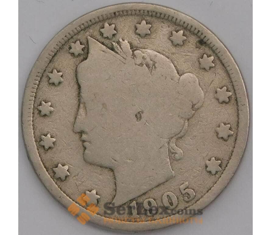США монета 5 центов 1905 КМ112 F арт. 43917