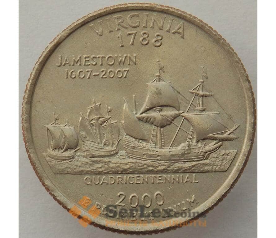 Монета США 25 центов 2000 P КМ309 aUNC Виргиния арт. 15446