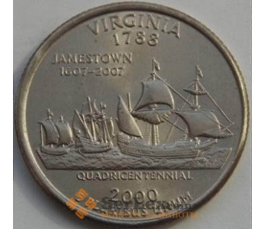 Теги: Монета США 25 центов 2000 Виргиния D UNC арт. С03262,купить дешево.