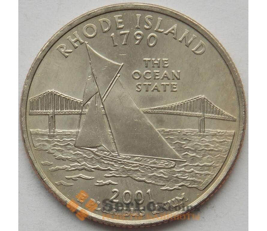 Монета США 25 центов 2001 D КМ320 UNC Род Айленд (J05.19) арт. 15824