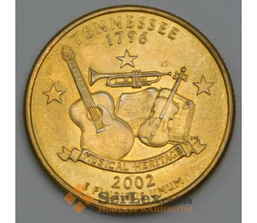 США 25 центов 2002 D КМ331 UNC Теннесси позолота