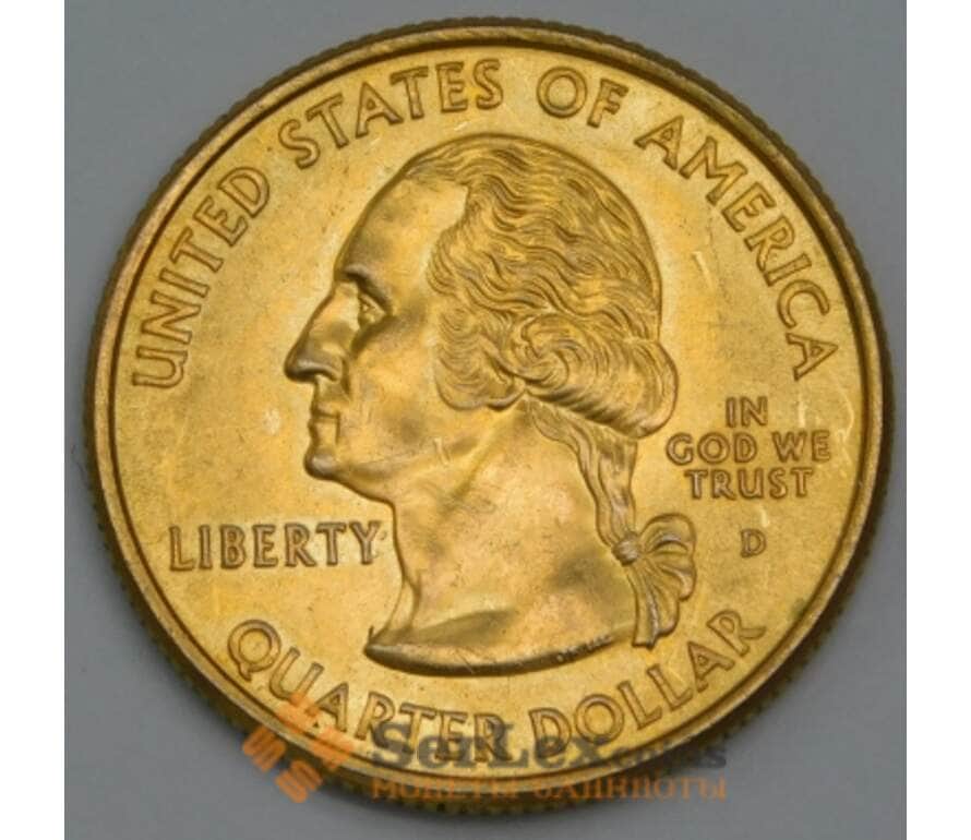 Монета США 25 центов 2002 D КМ331 UNC Теннесси позолота арт. 39042