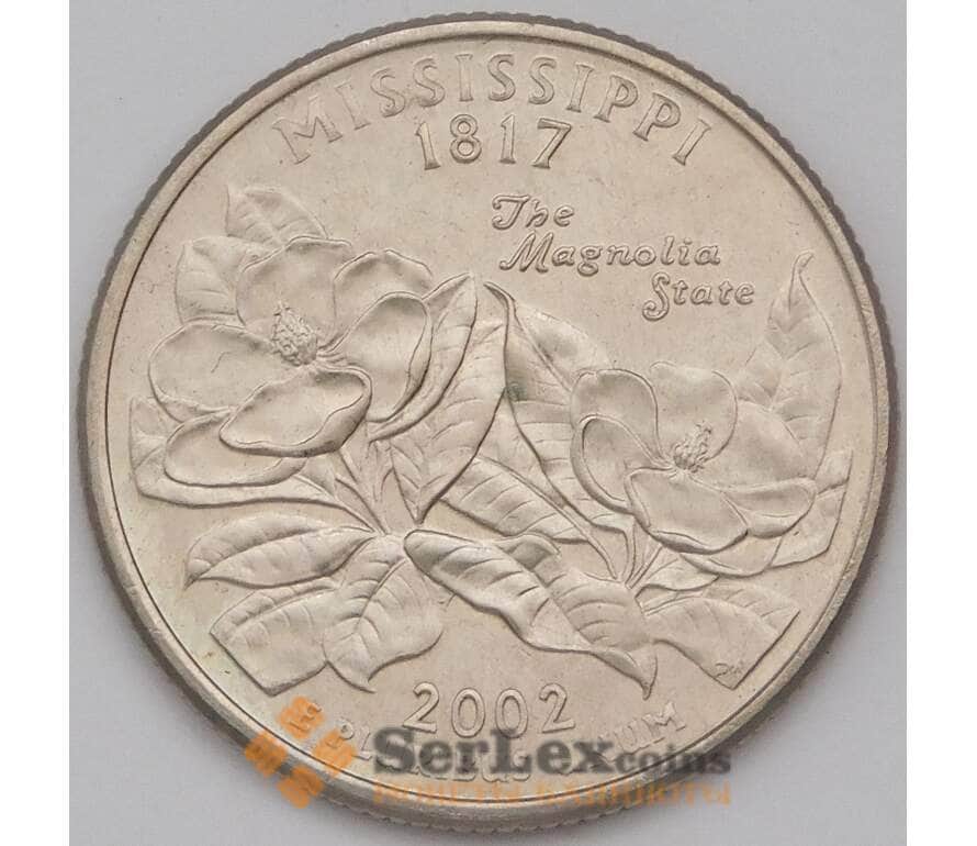 США 25 центов 2002 D КМ335 UNC Миссиссиппи