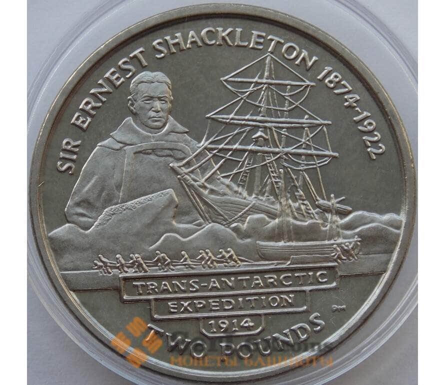 Монета Южная Джорджия и Южные Сэндвичевы острова 2 фунта 2004 BU Эрнест Генри Шеклтон арт. 13657