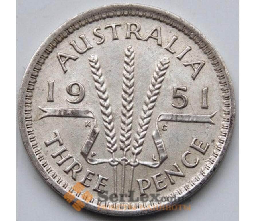 Монета Австралия 3 пенса 1951 КМ44 AU Серебро арт. 5491