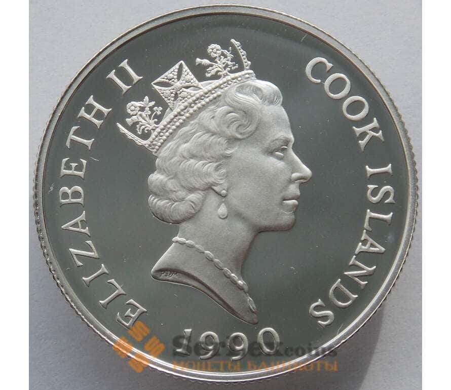 Монета Кука острова 10 долларов 1990 КМ80 Proof Серебро Слоны (J05.19) арт. 15266
