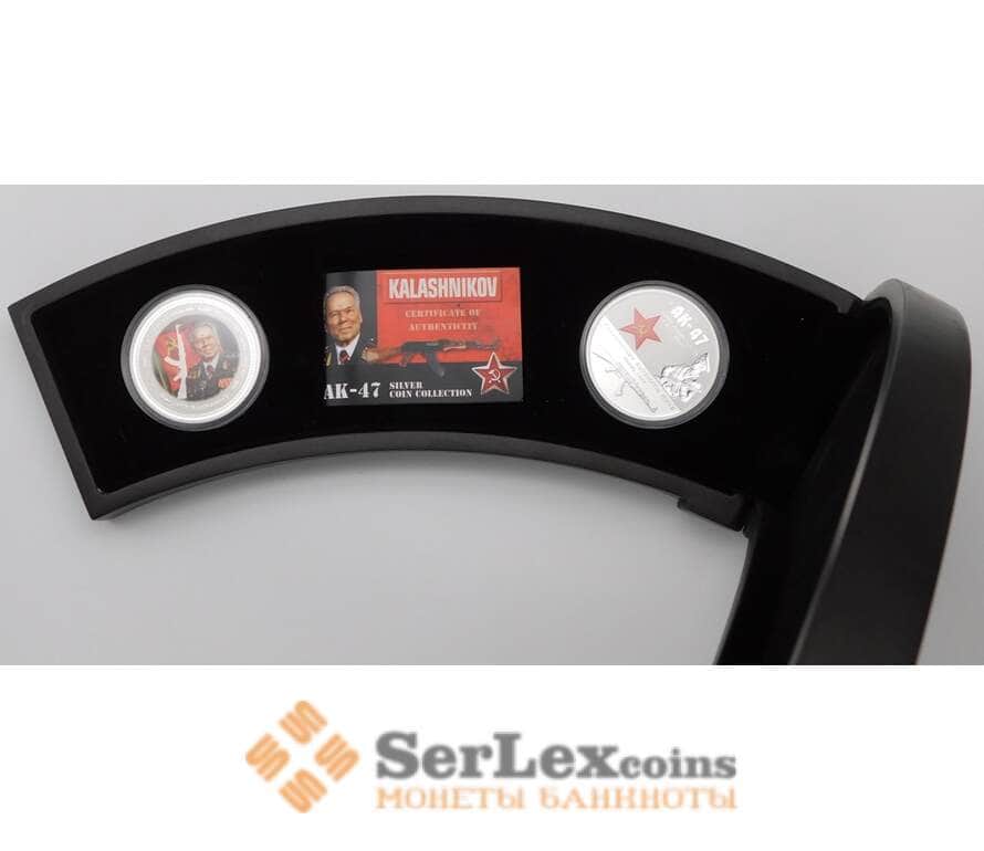 Монета Острова Кука 2 доллара 2007 (2 шт) Калашников АК-47 Серебро арт. 29489