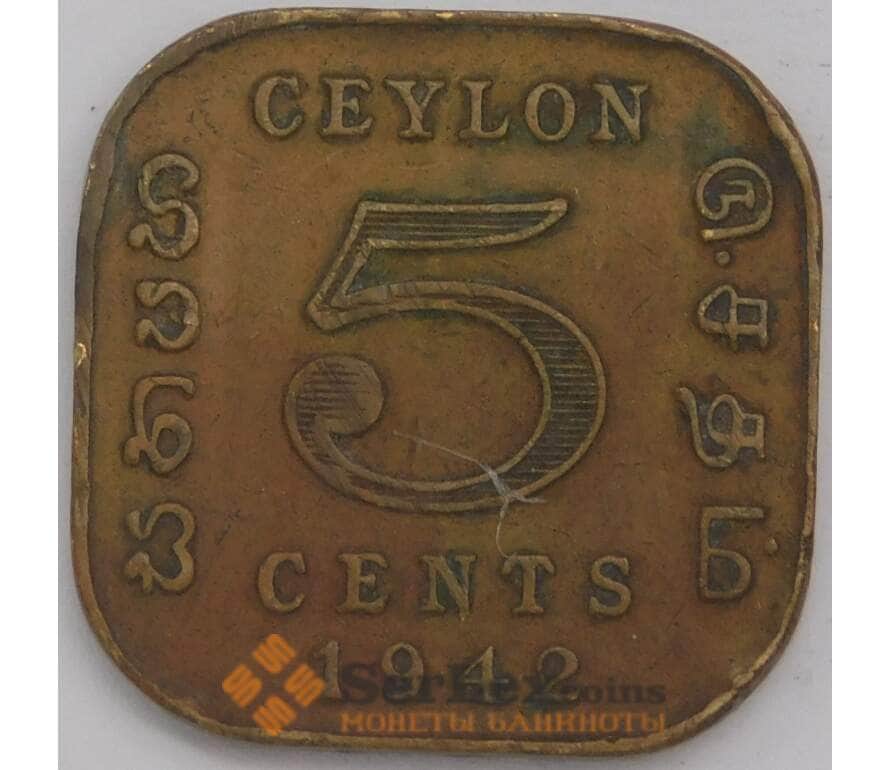 Монета Цейлон 5 центов 1942 КМ113.1 VF арт. 8446