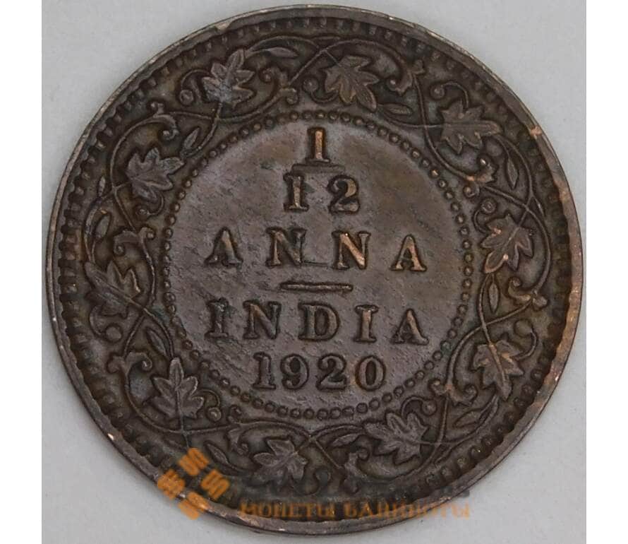 Монета Британская Индия 1/12 анна 1920 КМ509 XF арт. 21335