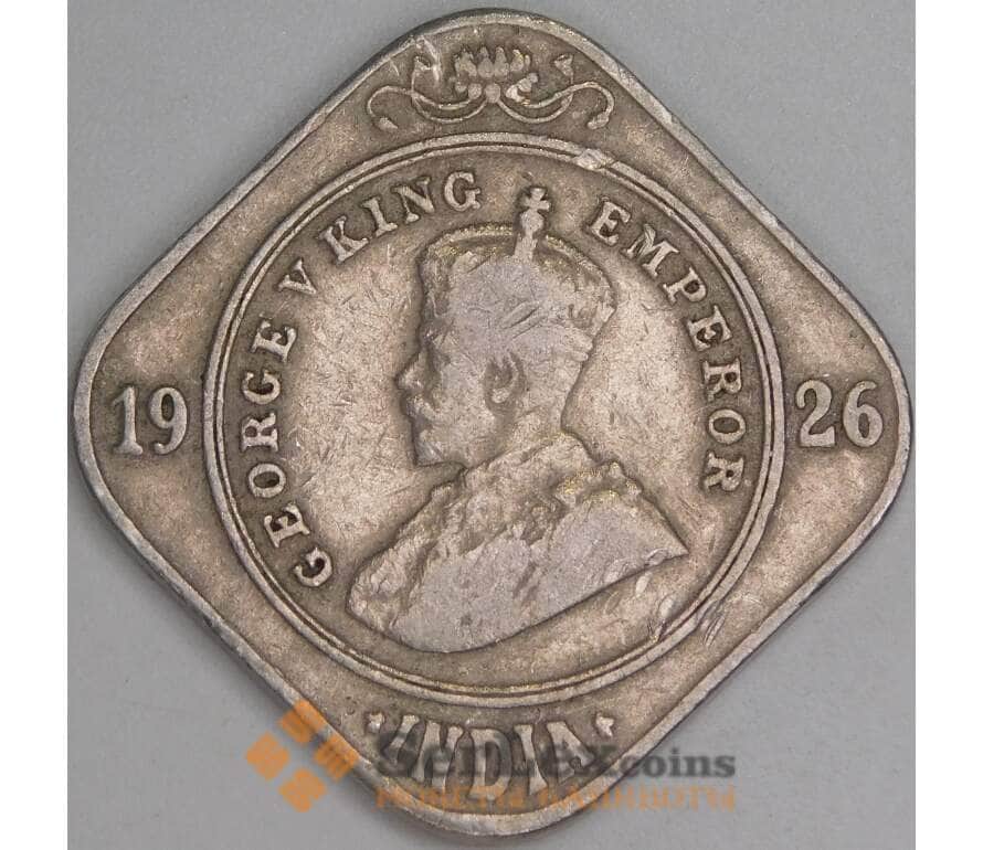 Британская Индия 2 анна 1926 КМ516 F арт. 55039