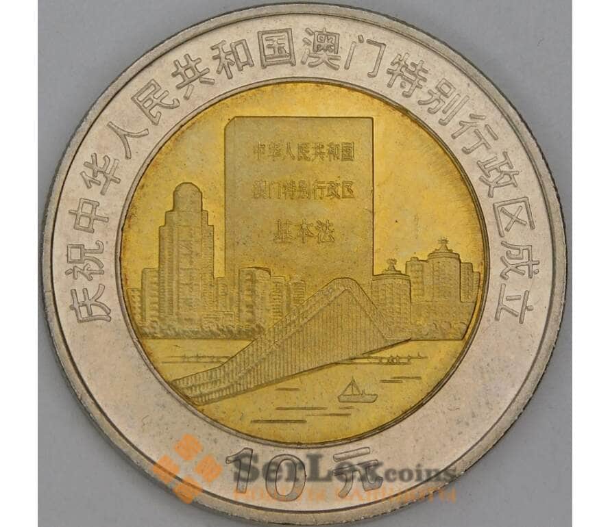 Монета Китай 10 юаней 1999 КМ1279а UNC Возвращение Макао арт. 7753