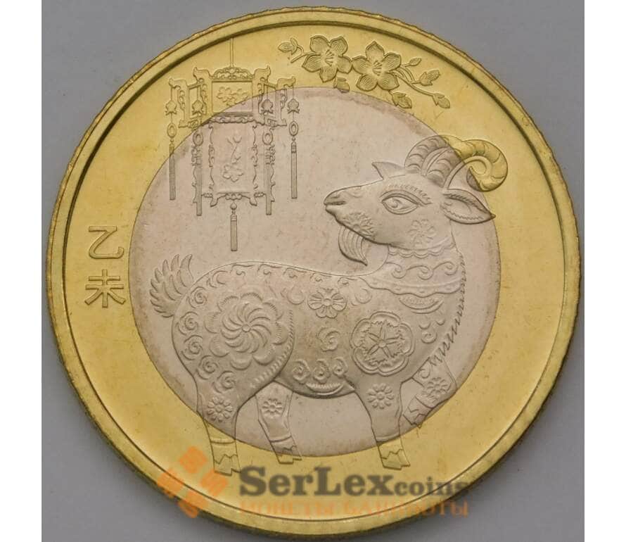 Монета Китай 10 юаней 2015 UNC Год козы арт. 38367