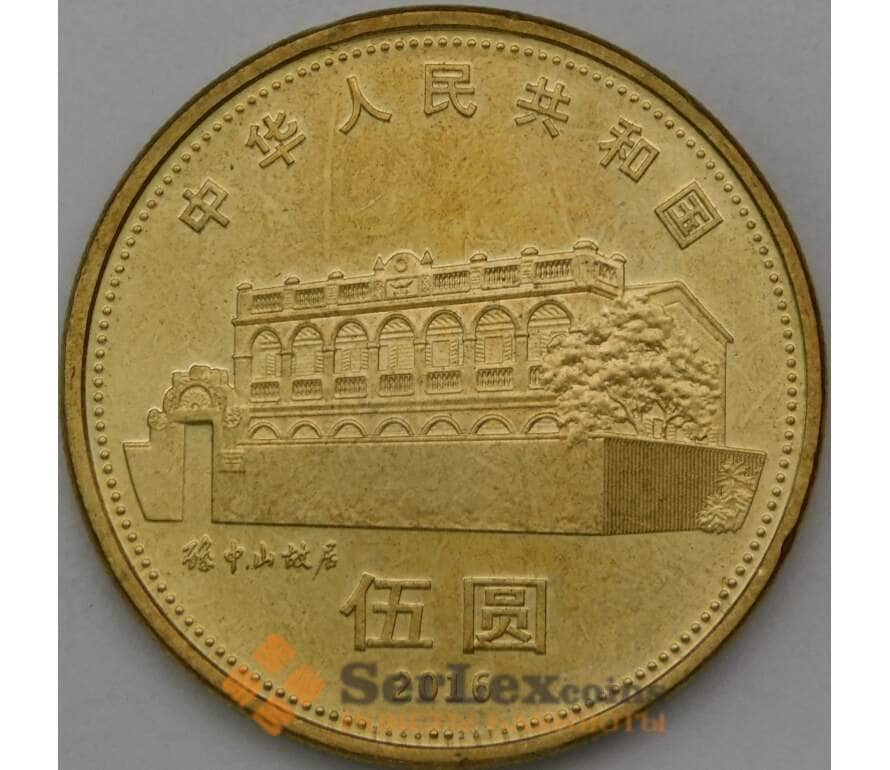 Монета Китай 5 юаней 2016 aUNC 150 лет со Дня рождения Сунь Ят-Сена арт. 28402