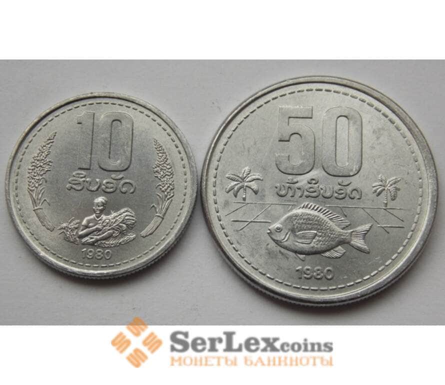 Монета Лаос 10 и 50 атов 1980 КМ22 КМ24 UNC (2шт) арт. С02451