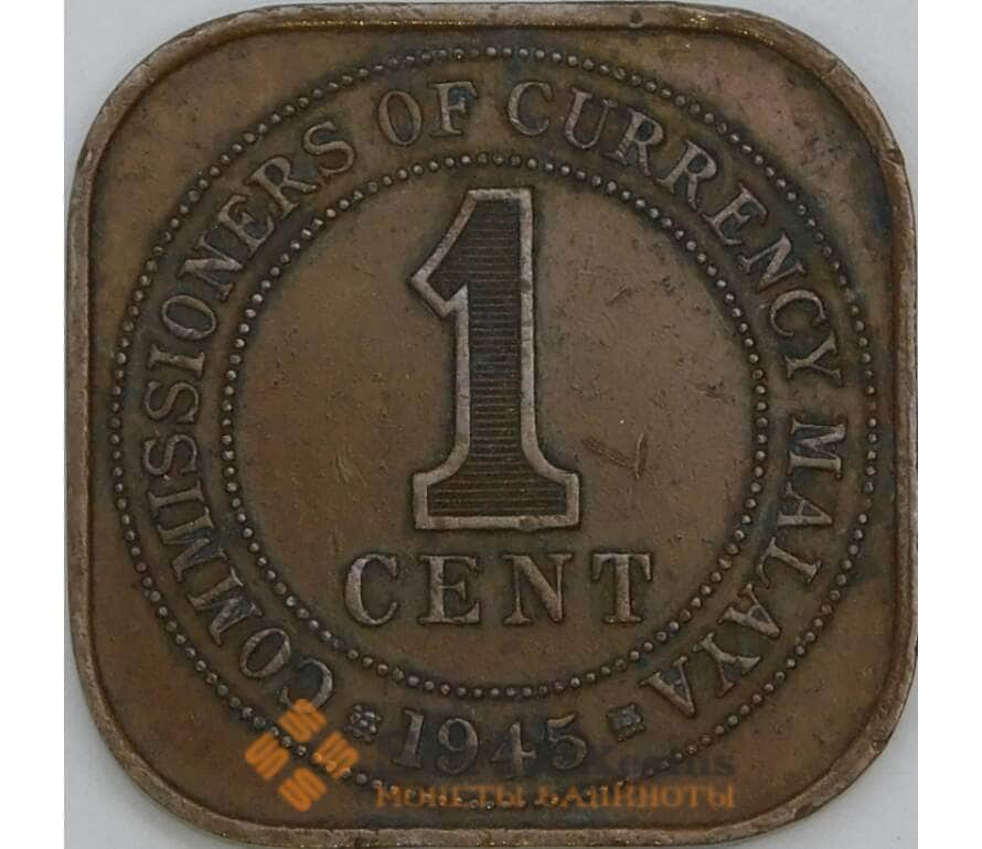Малайя монета 1 цент 1945 КМ6 XF арт. 42029