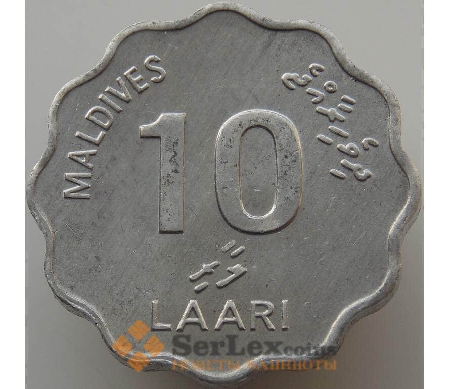 Монета Мальдивы 10 лаари 1984-2007 КМ70 Корабль арт. 10058