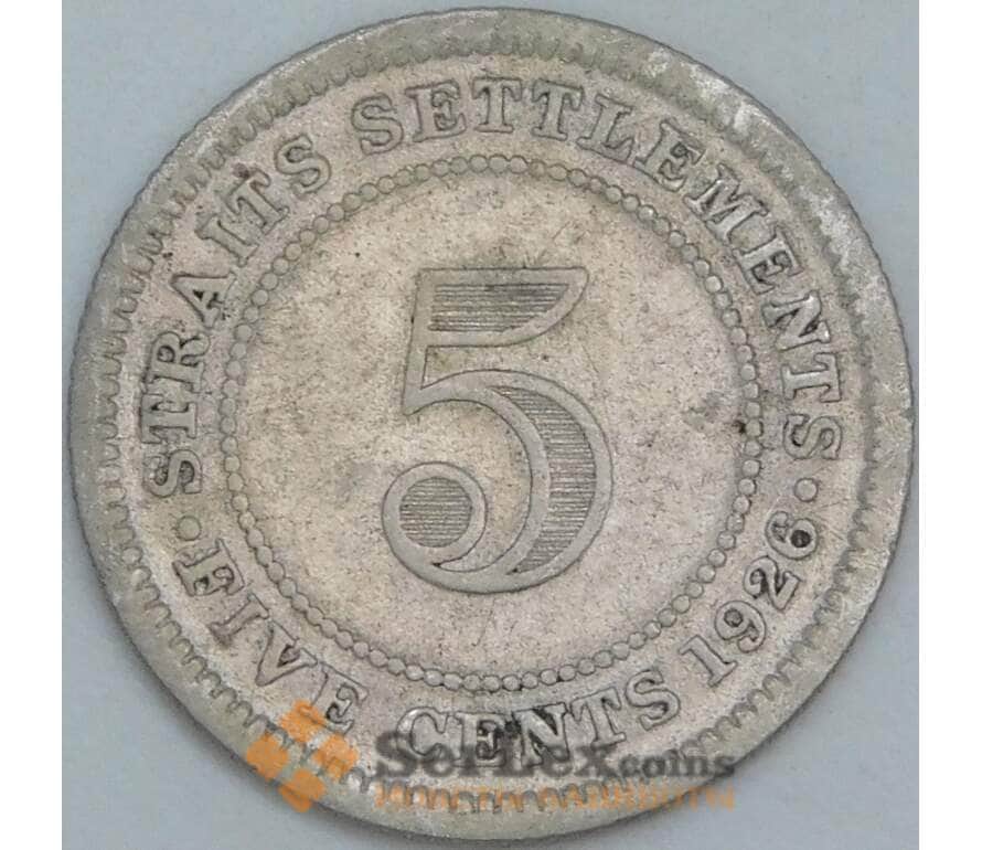 Монета Стрейтс Сеттлментс 5 центов 1926 КМ36 F арт. 8386