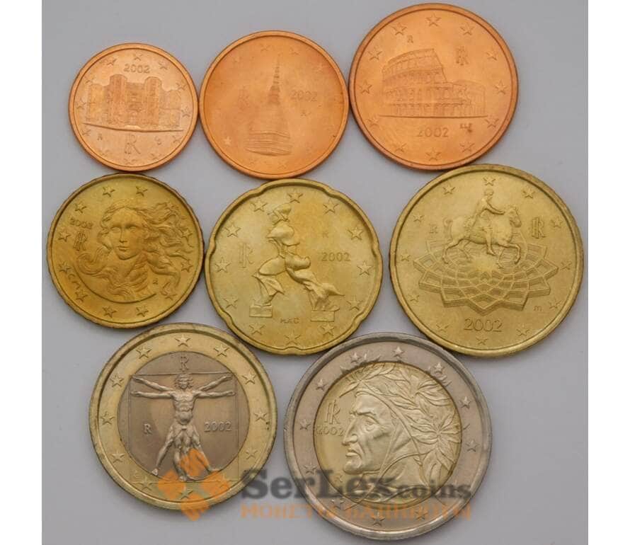 Монета Италия набор Евро монет 1 цент - 2 евро 2002 (8 шт) UNC арт. 38224
