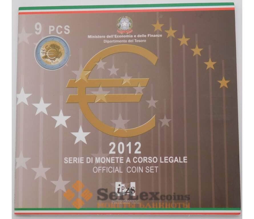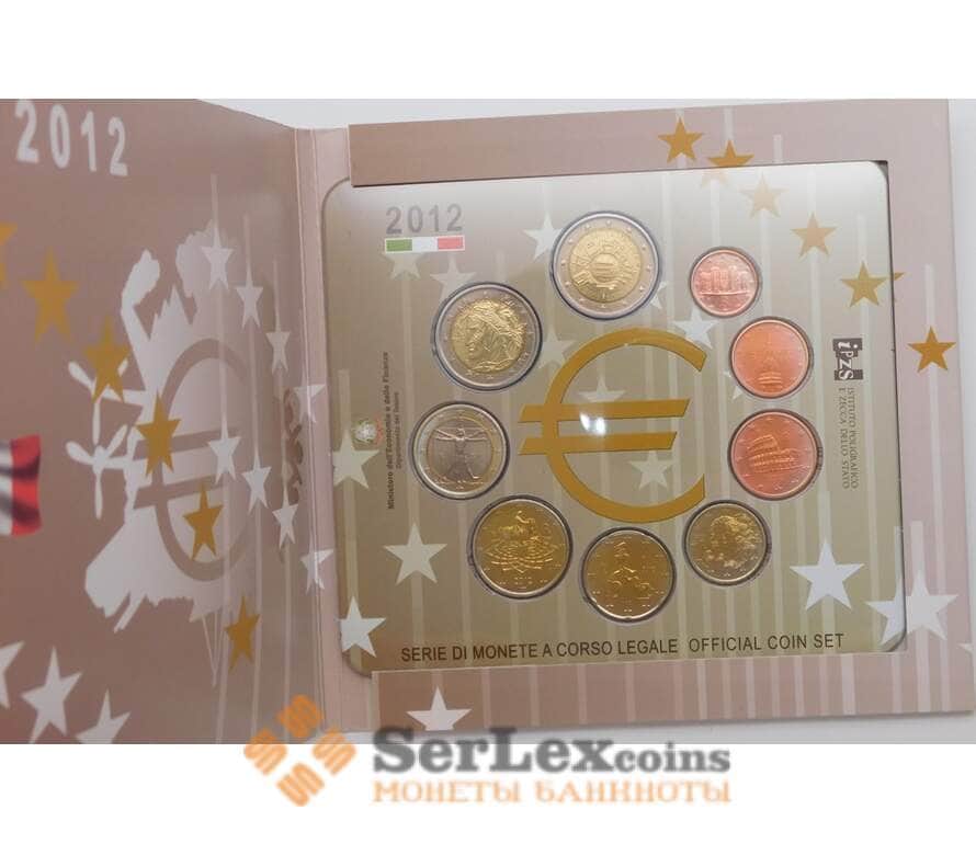 Монета Италия Официальный набор Евро 1 цент - 2 евро 2012 (8 шт)+ 2 евро 10 лет Евро BU арт. 28545