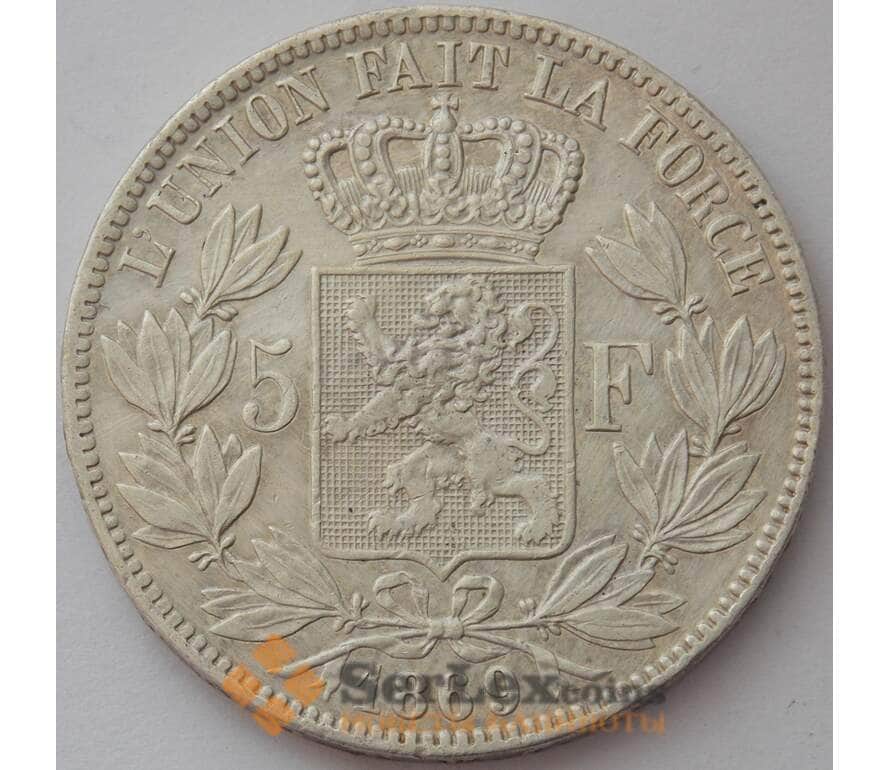 Монета Бельгия 5 франков 1869 КМ24 XF Серебро (J05.19) арт. 16165