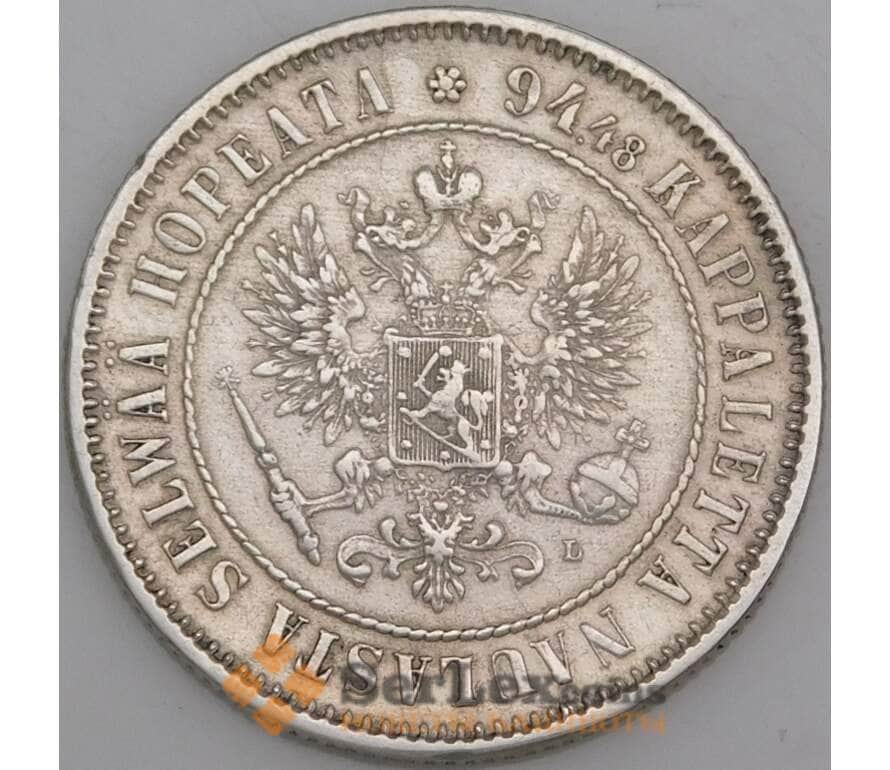 Русская Финляндия монета 1 марка 1890 КМ3.2 XF арт. 46031