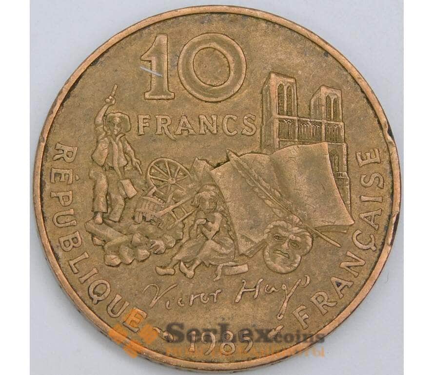 Франция 10 франков 1985 КМ956 XF Виктор Гюго