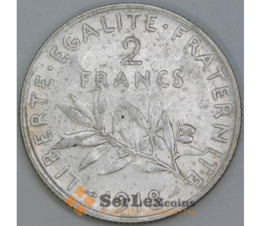 Франция 2 франка 1918 КМ845 VF арт. 56986