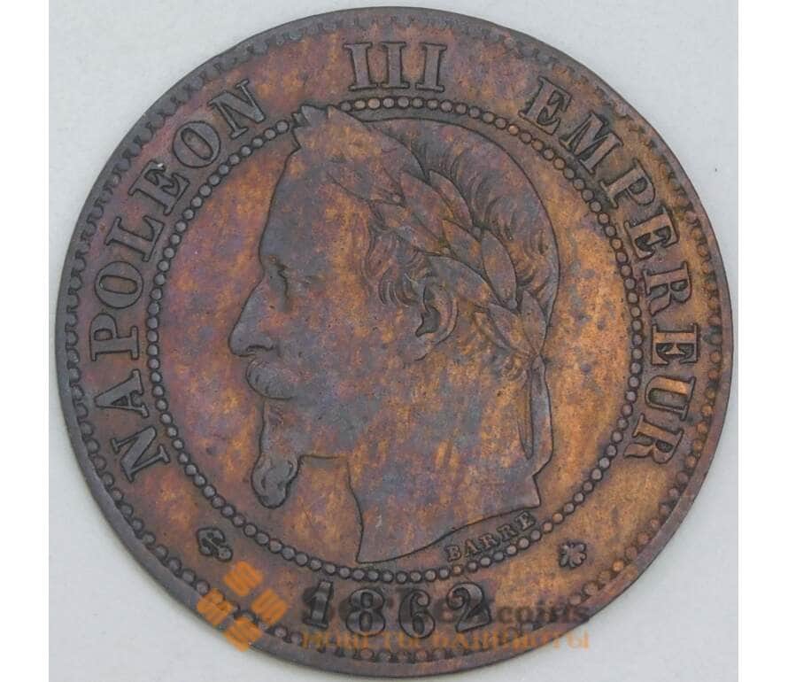 Франция 2 сантима 1862 A КМ796 VF арт. 57017