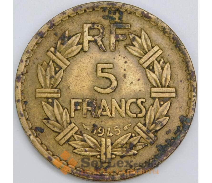 Франция 5 франков 1945 КМ888а VF ржавчина арт. 57363