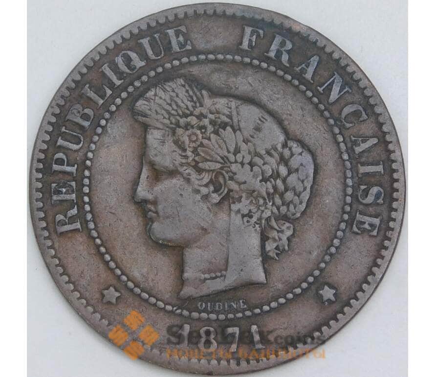 Монета Франция 5 сантимов 1871 А КМ821 VF арт. 38910