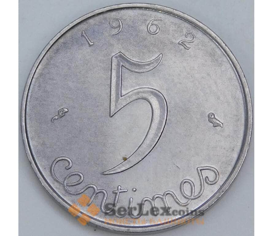 Франция 5 сантимов 1962 КМ927 UNC арт. 57382