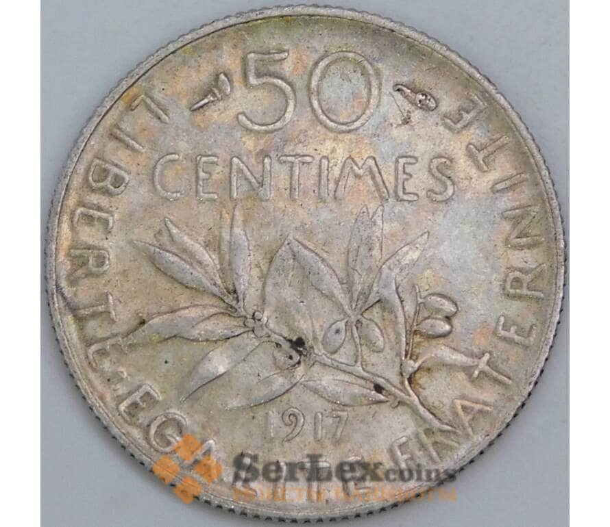 Франция 50 сантимов 1917 КМ854 XF-AU