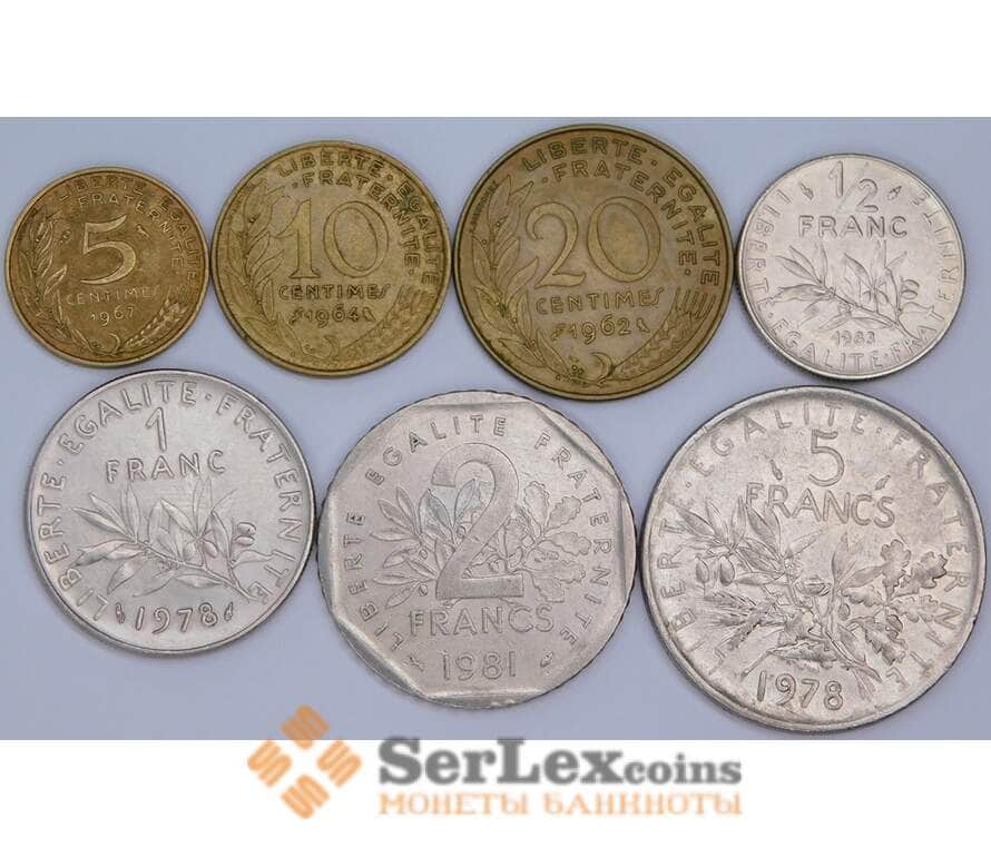 Франция набор монет 5 10 20 сантим 1/2 1 2 5 франков (7 шт) XF-AU арт. 57317