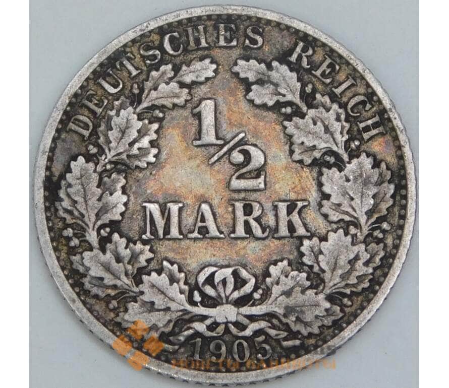 Германия 1/2 марки 1905 А КМ17 VF