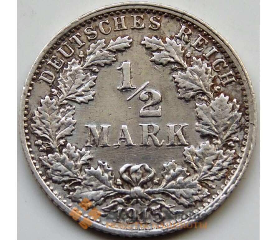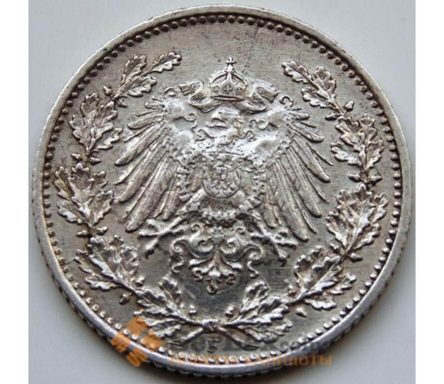 Монета Германия 1/2 марки 1915 F КМ17 XF Серебро арт. С04905