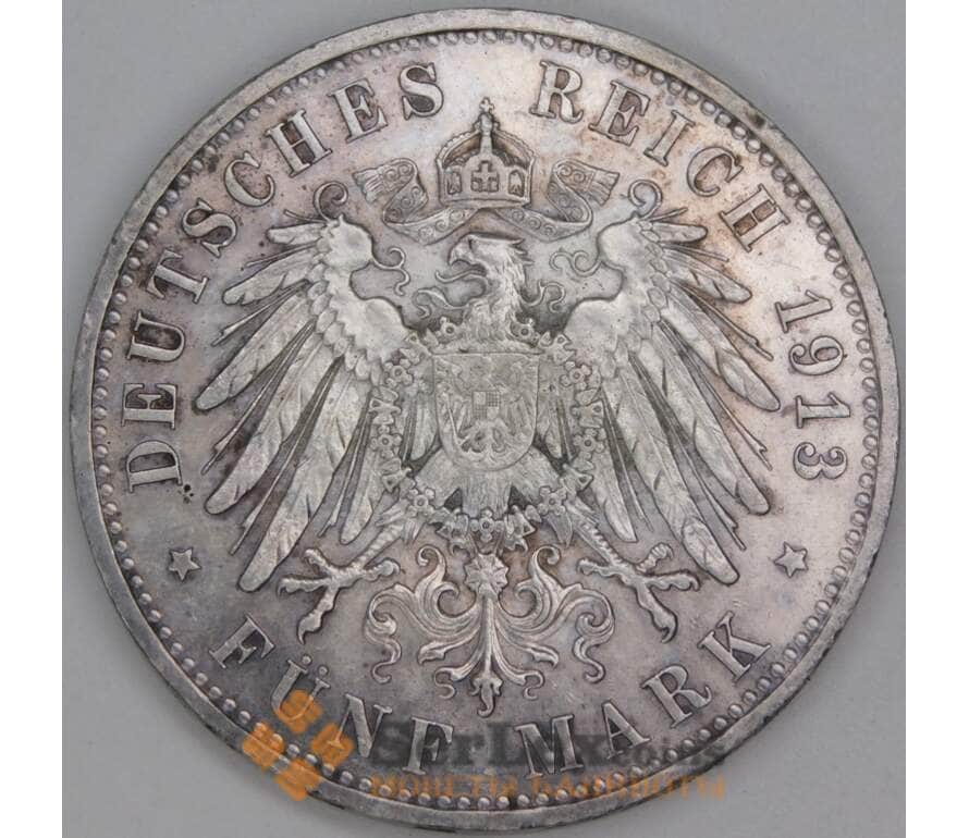 Монета Германия Пруссия 5 марок 1913 КМ536 XF арт. 28465