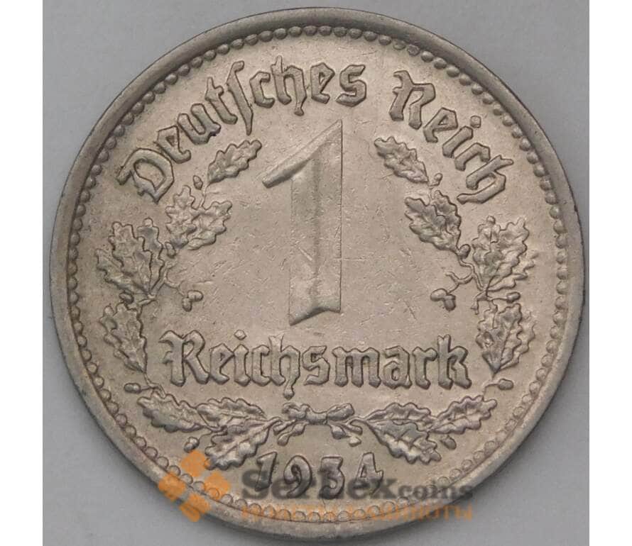 Монета Германия 1 рейхсмарка 1934 G КМ78 XF арт. 28193